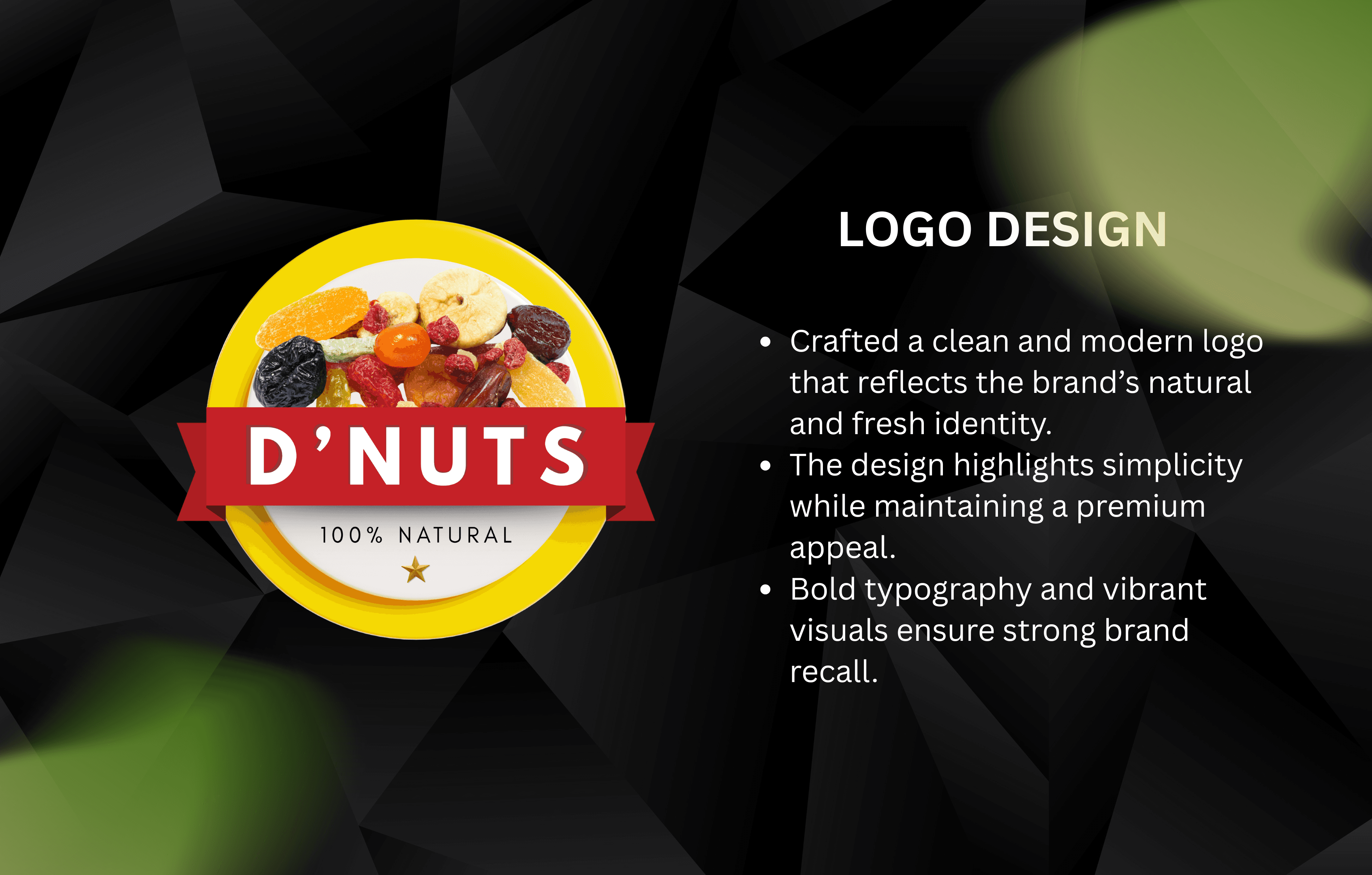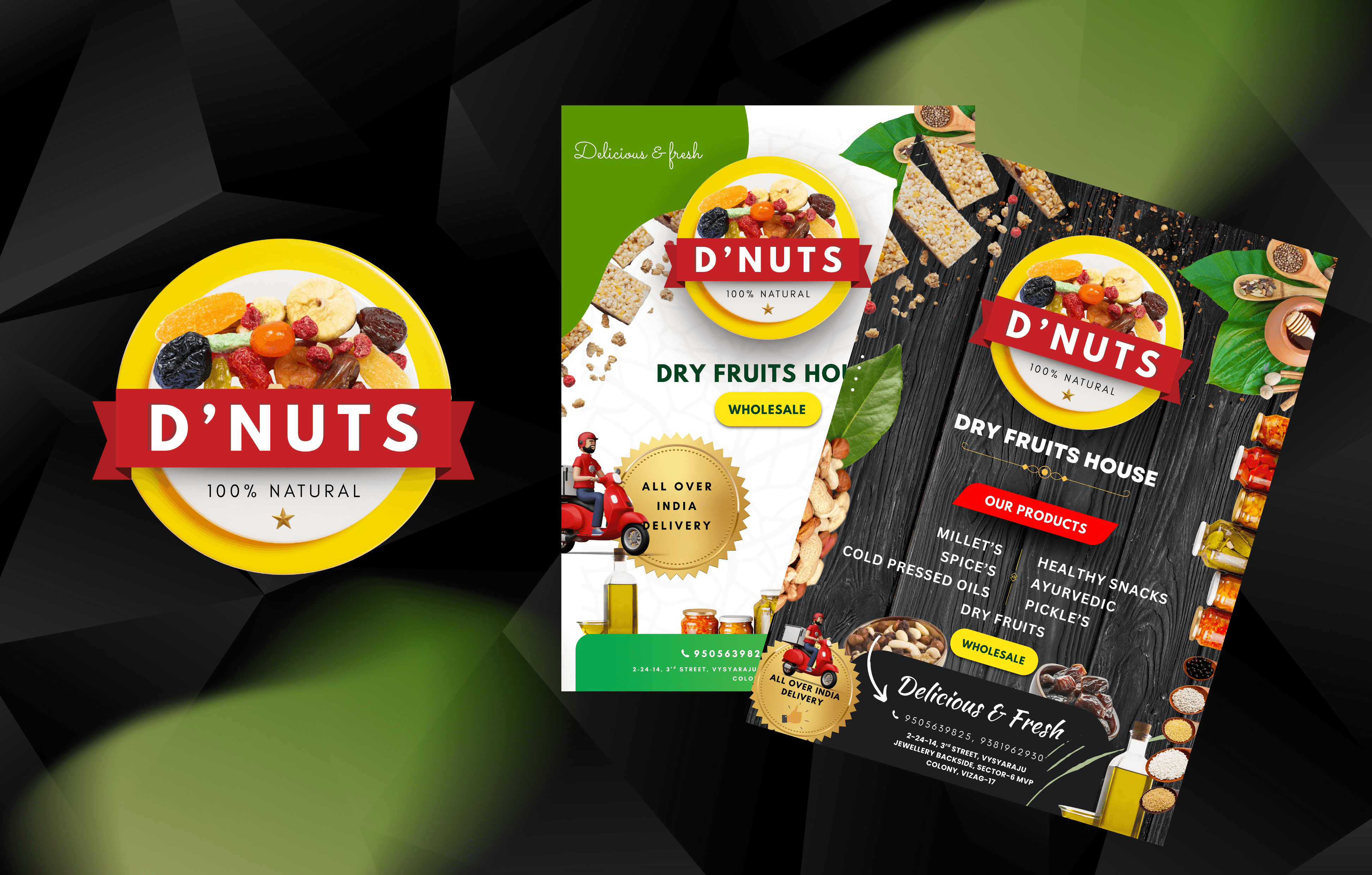 D’Nuts is a premium dry fruit and healthy snacking brand, offering a wide variety of nuts, dried fruits, and natural products. They approached us to establish a strong and recognizable brand identity that reflects their core values of health, quality, and trust.